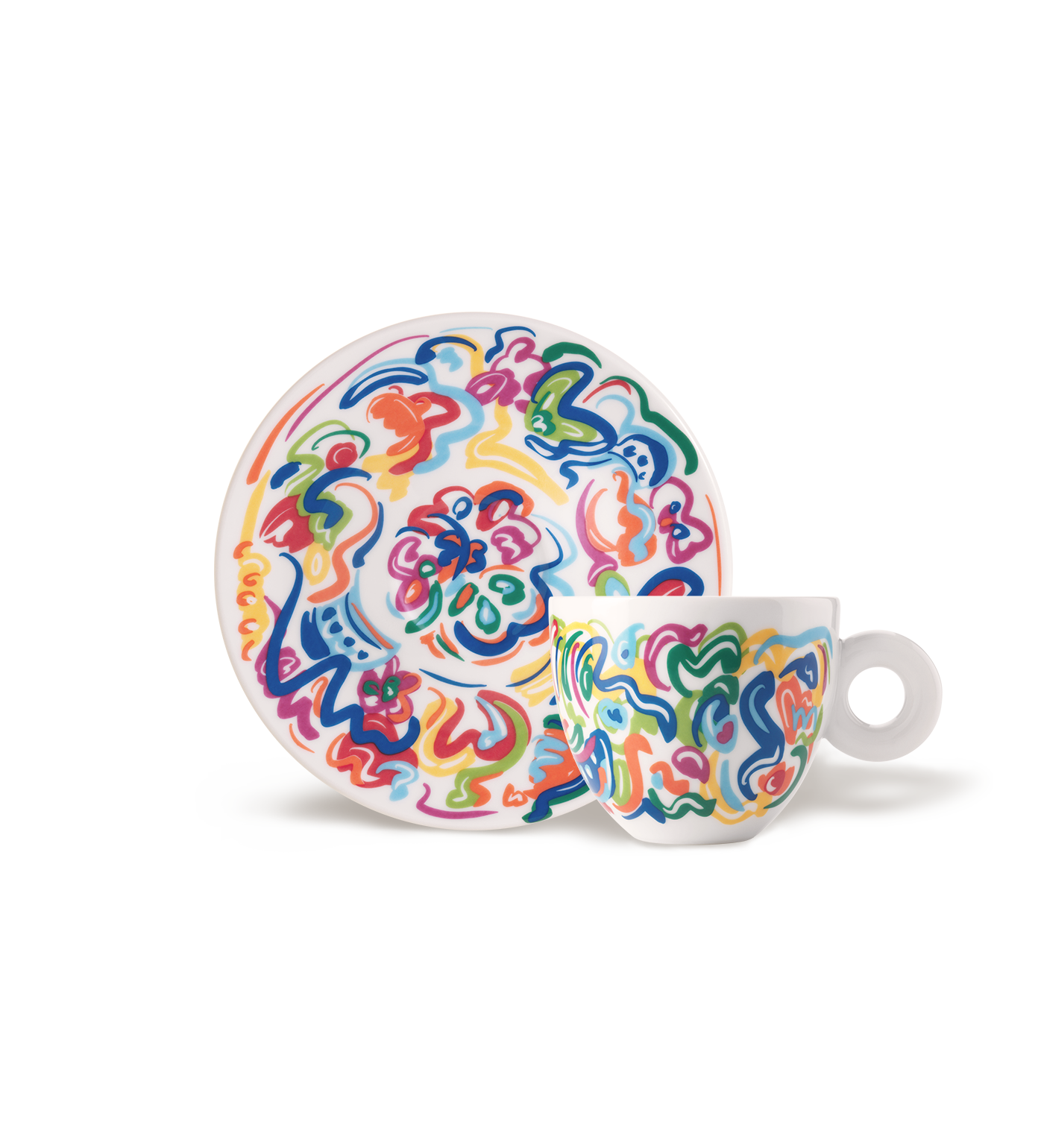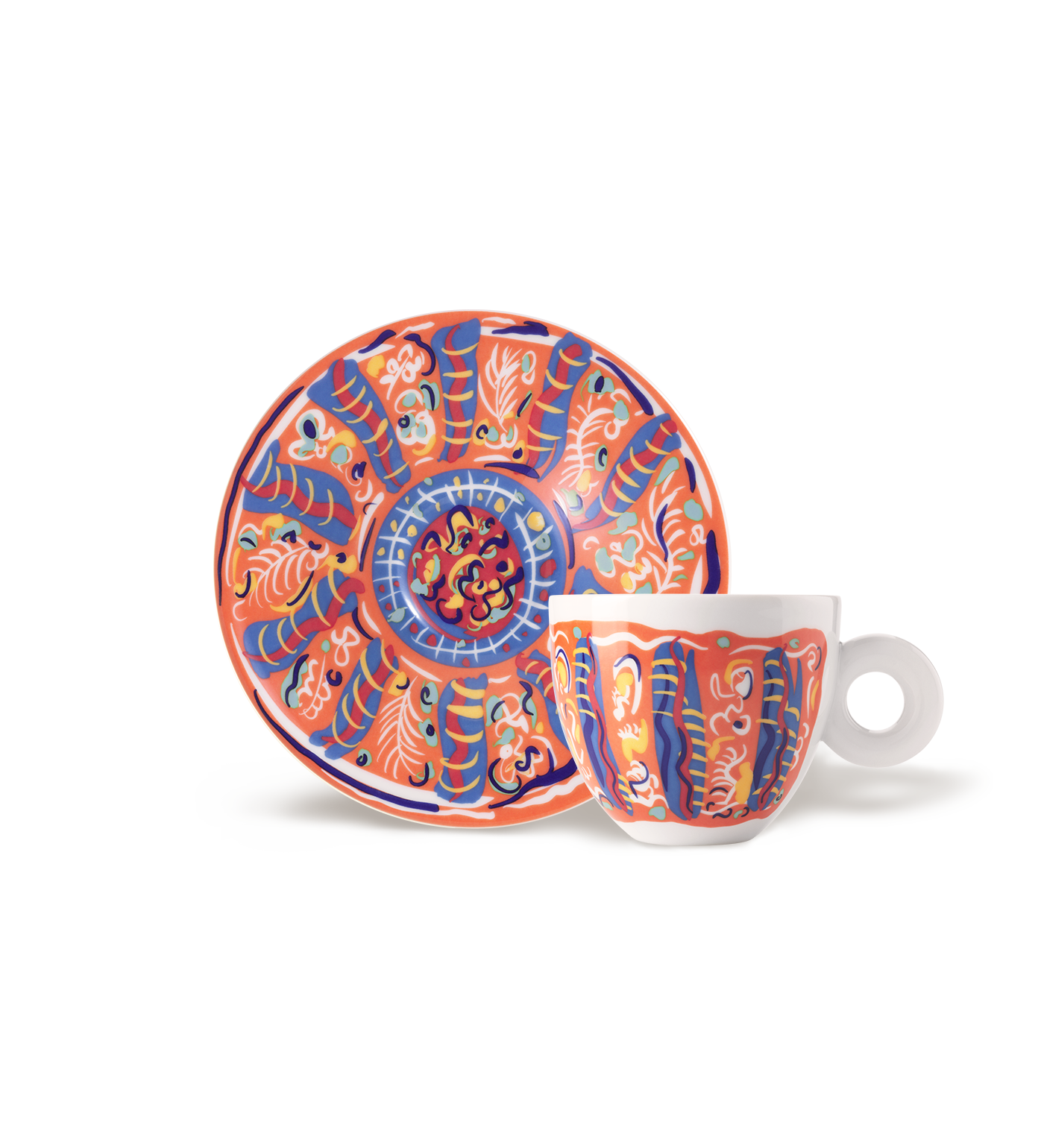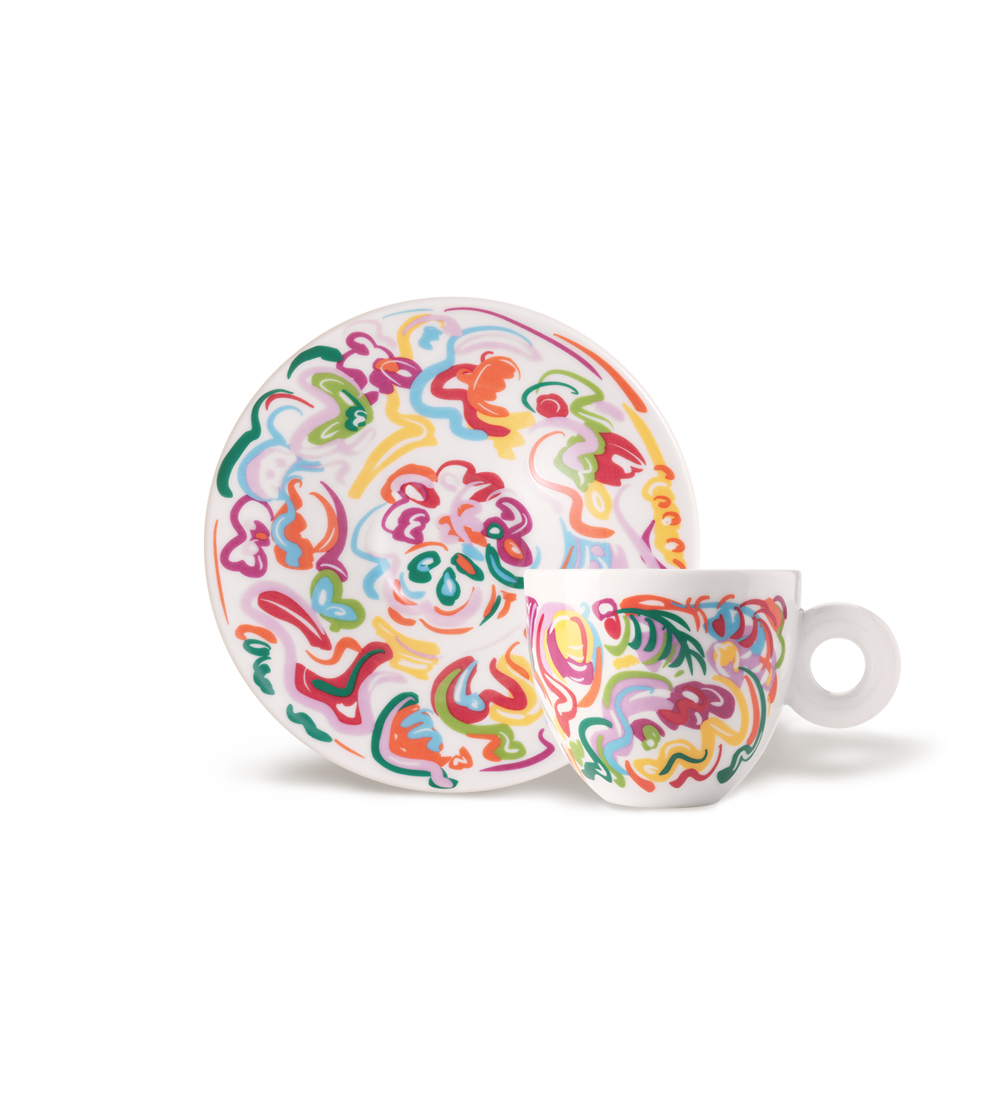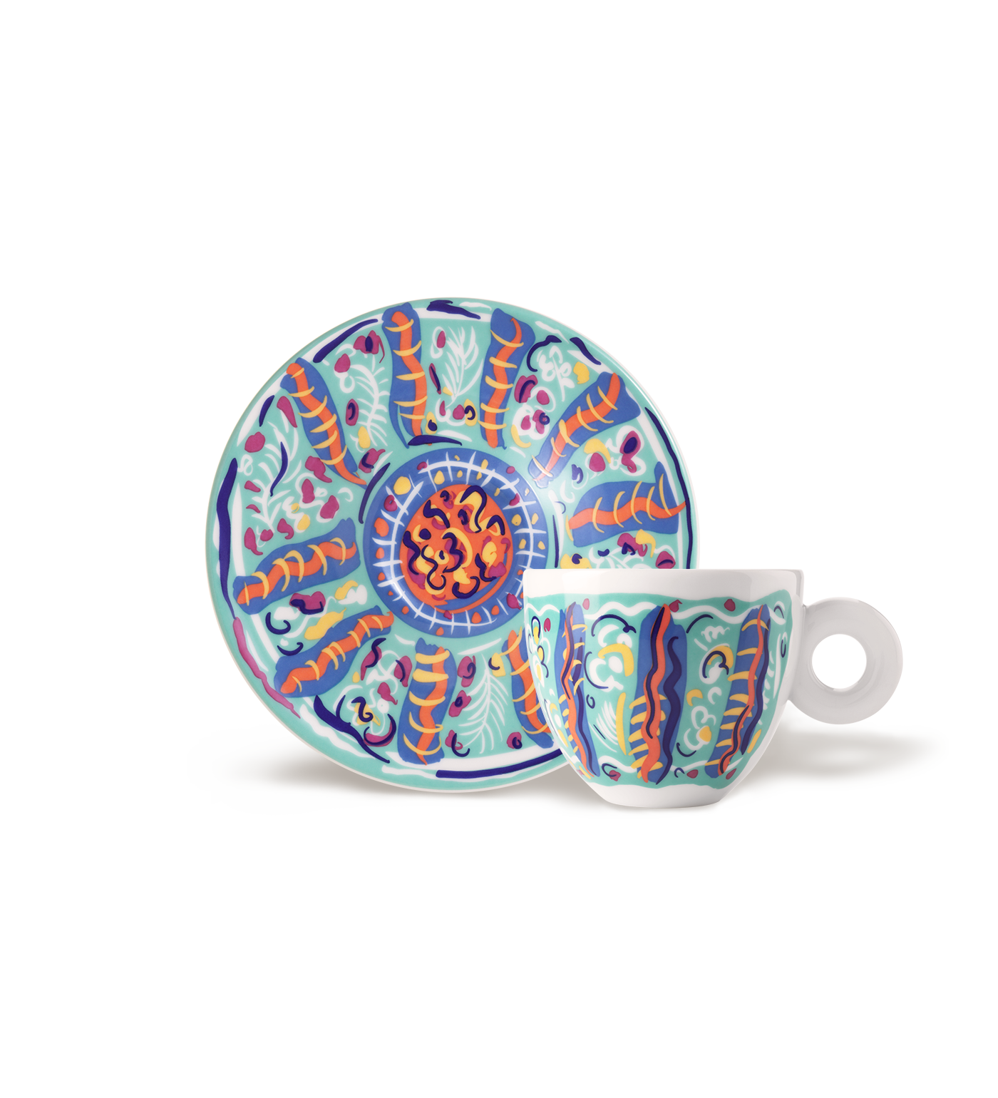 In this special edition for Illy, Calero brings her signature color palette and floral motifs into the realm of functional art.
