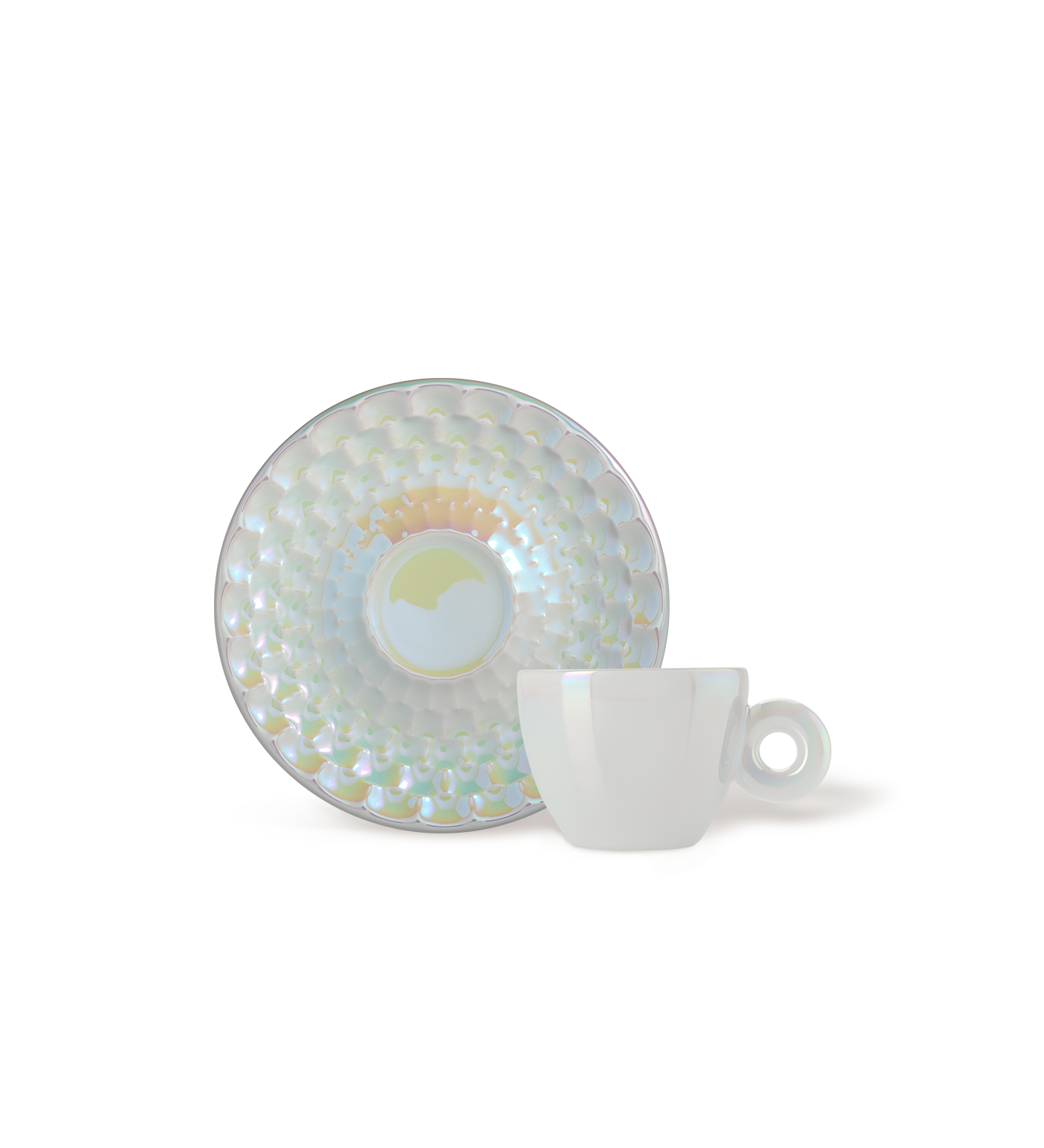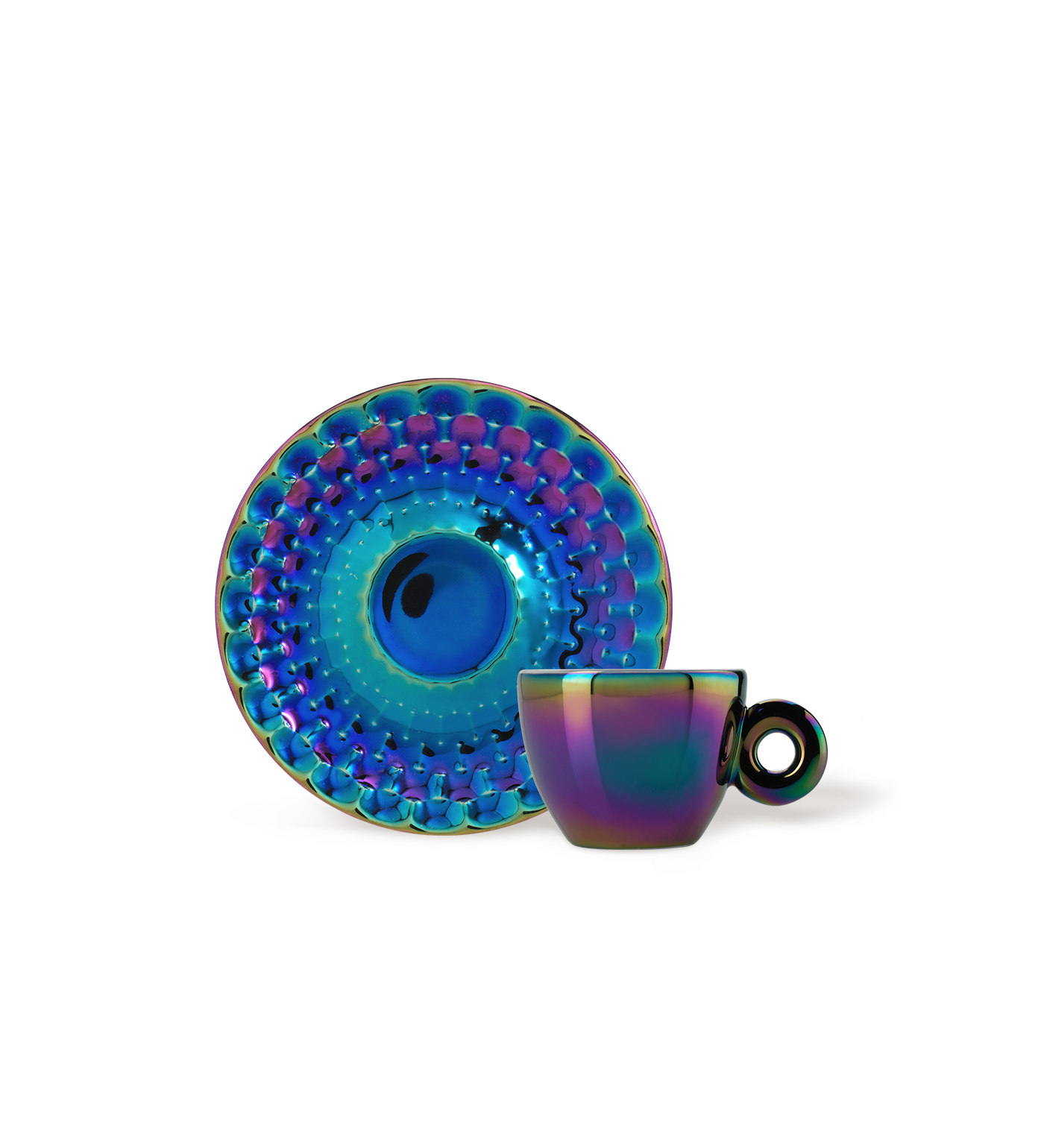 This is how our iconic coffee cup was transformed into a disco ball. The series of cups created by John Armleder for the illy Art Collection is entitled “Tastes” and recreates the same light reflections and effects as that installation. He says: “A cup is a cup. On the other hand, it could reflect what it contains. And, he adds, it could represent time.”
