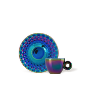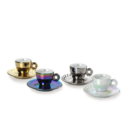 This set contains 4 signed and numbered espresso cups with saucers, 1 brochure, and 1 certificate of authenticity